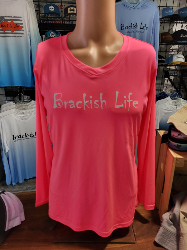 The perfect way to protect yourself in style is with one of our original shirt designs. The Brackish logo is featured on the front of a long sleeve UV shirt with our A little salty...A little fresh on the back.