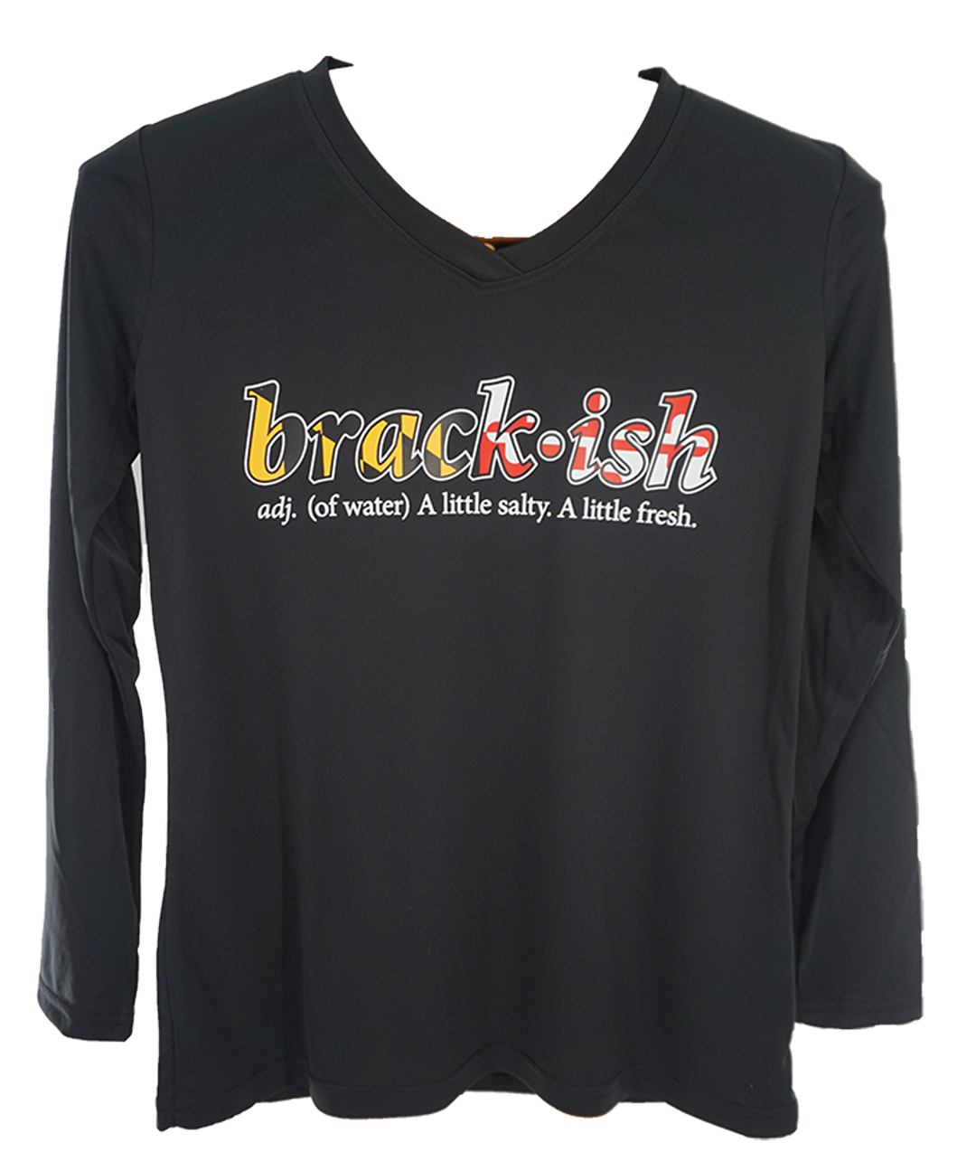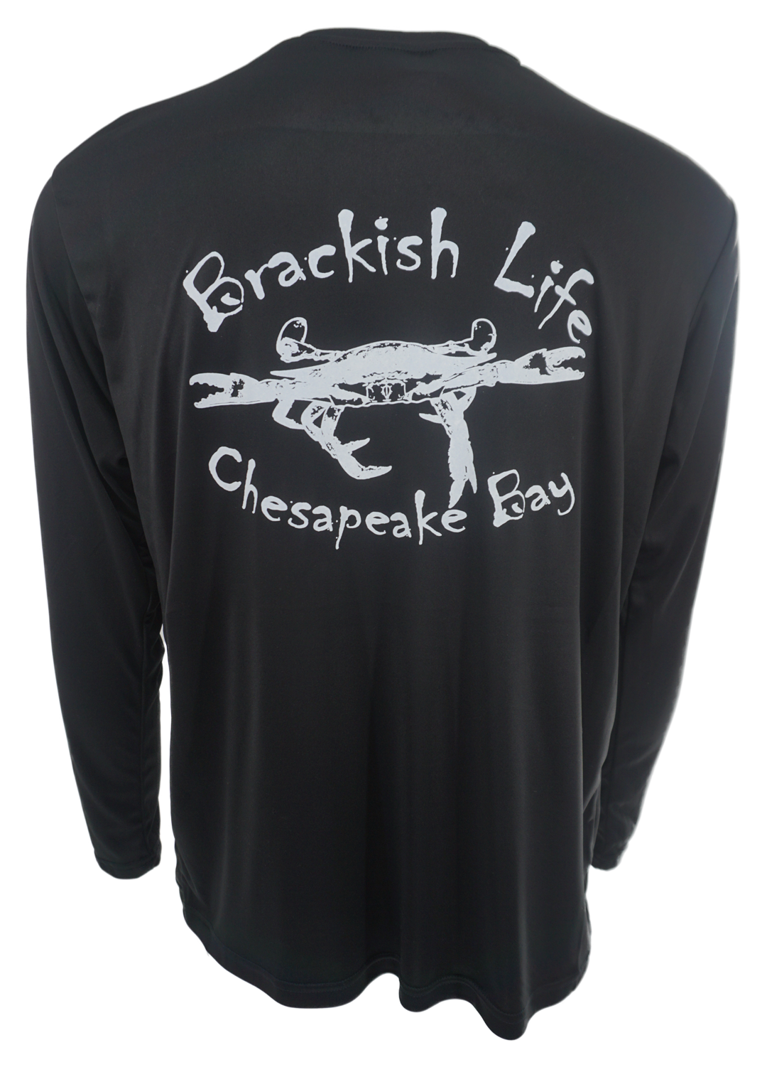 The perfect way to protect yourself in style is with one of our original shirt designs. The Maryland Brackish definition is featured on the front of a long sleeve UV shirt with our Brackish crab on the back.